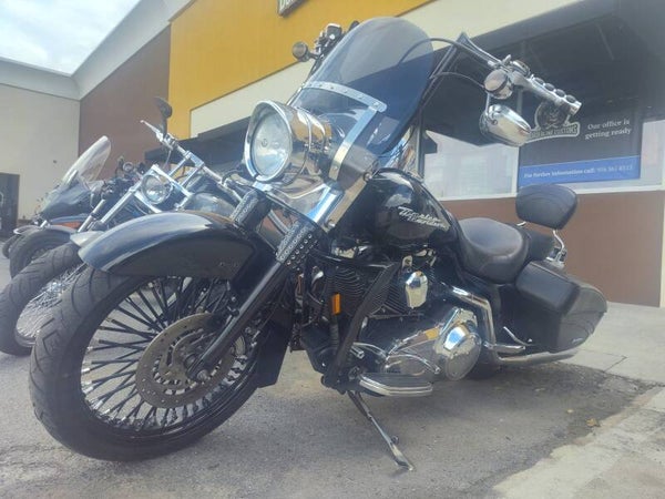 Super clean customized Road King for someone looking to have that nice looking but affordable motorcycle there's your chance. Loud aftermarket exhaust and lots of extras.